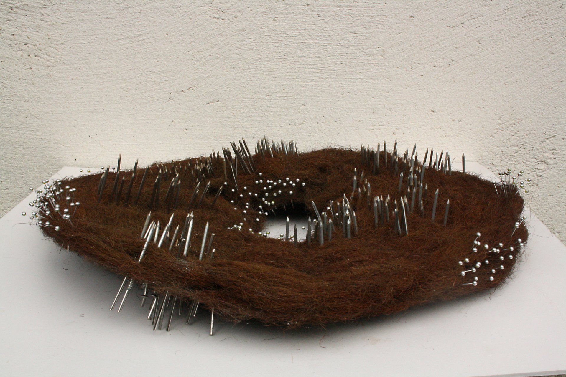 Mittels Stahlwolle lassen sich meiner Erfahrung nach Veränderung und Entwicklung sehr unmittelbar und vielschichtig darstellen. Die farbliche Veränderung des Objektes setzt bereits nach wenigen Tagen ein. Die Intensität und Schnelligkeit der Veränderung werden durch die Witterung und andere äußere Einflüsse bestimmt. Nach einigen Wochen beginnt sich die Form der einzelnen Elemente zu verändern.